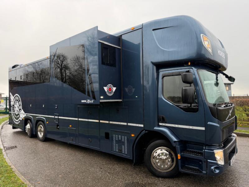 Beautiful 2020 Volvo FE 26,000 kg Rear steer model. Coach built by Empire Coach builders. Ultimate Model. Brand new build, Stalled for 6. Smart luxurious living, sleeping for 6. Twin slide outs. Underfloor storage. Full tilt cab. Mega specification.