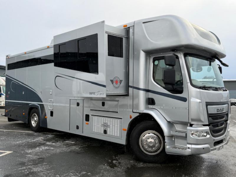2017 DAF LF Automatic 18,000 kg Coach built by Empire Coach builders. Superior Model. Stalled for 5. Smart luxurious living, sleeping for 6. Large electric slide out Underfloor storage. Full tilt cab. Huge specification. Low mileage