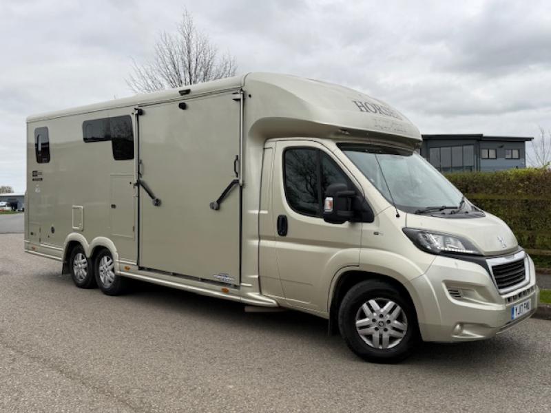 Beautiful 2017 Peugeot Boxer Equi-trek Valiant Excel 5 Ton 3 axle . Stalled for 2 rear facing.. Smart living at the rear. High specification.. Stunning horsebox.. Only 45011 Miles