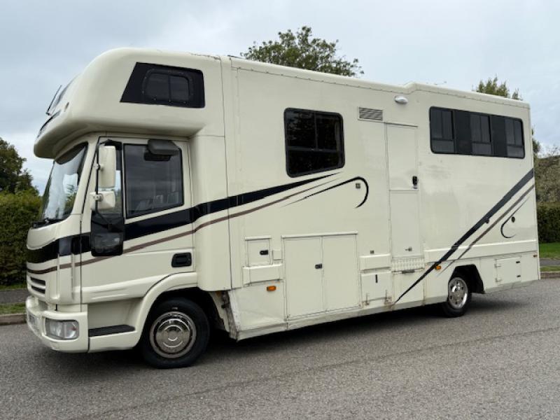 Beautiful 14,000 Kg 2006 DAF LF 220 Coach built by Whittaker Coach builders. Stalled for 3 horses or 4 ponies. Smart luxurious living, sleeping for 6. Large slide out. Underfloor storage. Only 32,191 miles from new! No external tack locker intruding into the horse area