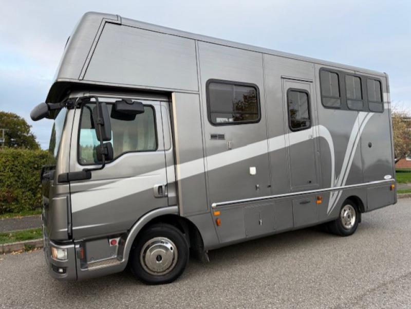 2006 MAN TGL Automatic 7.5 Ton Coach built by Grays Horseboxes. Stalled for 2 forward facing. Side ramp. Smart luxury living, sleeping for 4. Toilet and shower.. Full tilt cab