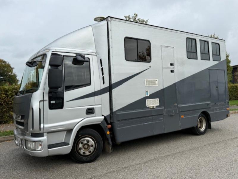 Beautiful 2013 Iveco Eurocargo 7.5 Ton Automatic, coach built by Elite. Stalled for 2 large horses or 3 ponies with smart spacious living, sleeping for 4. Toilet and shower. Underfloor storage.. Full tilt cab