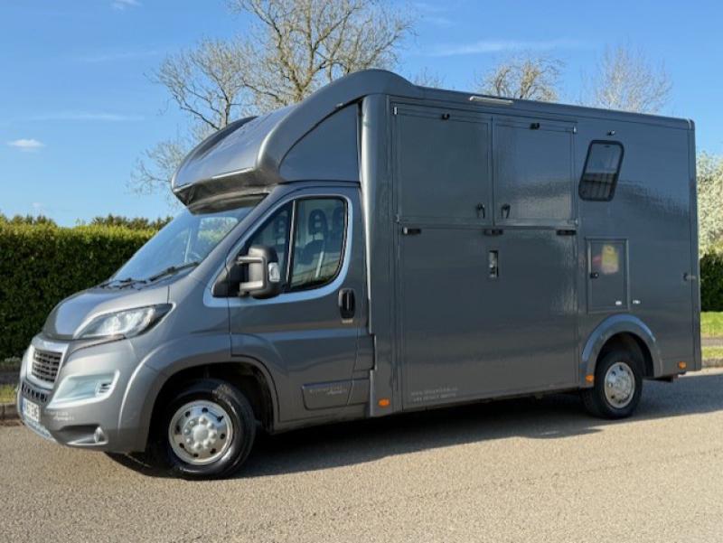 2020 Citroen Relay 3.5 Ton Coach built by Sterling coach builders. Built on LWB chassis Pro Exec Model Stalled for 2 rear facing.. Full wall between the horse area and changing area.. Smart changing area at the rear. Metallic paint. Stunning horsebox