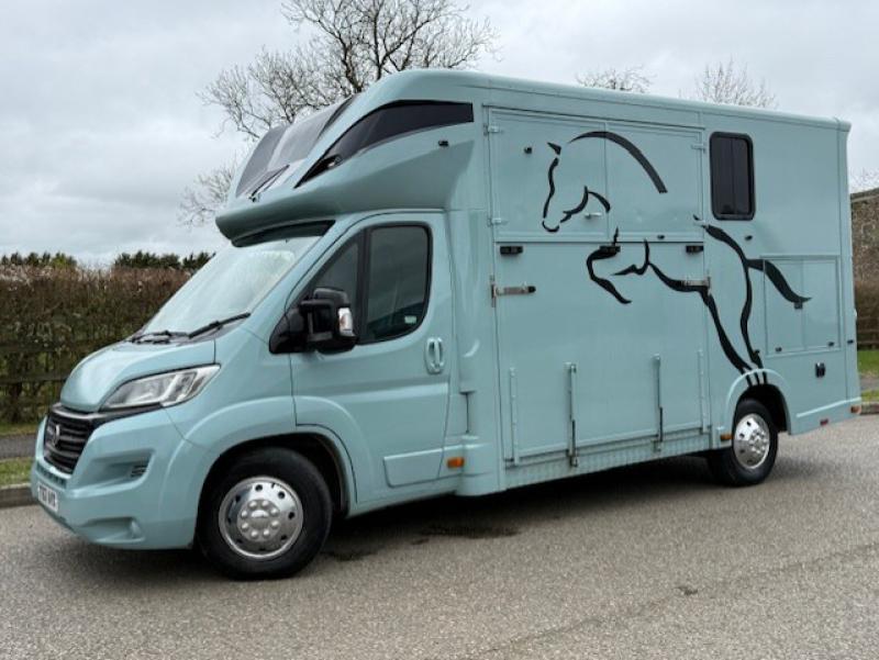 Beautiful 2018 Fiat Ducato 3.5 Ton Coach built by Regent horseboxes. Weekender Model. Stalled for 2 rear facing.. Smart compact living at the rear. Stunning 3.5 ton horsebox