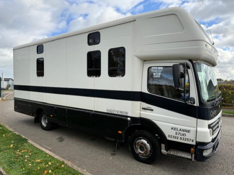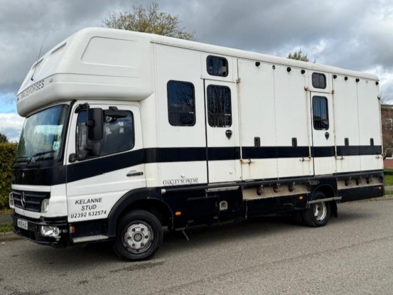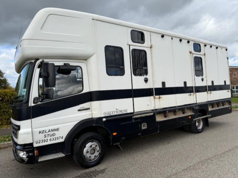 2005 Mercedes Benz Atego 7.5 ton Coach built by Oakley Coach builders. Stalled for 4 facing forward. with twin side ramps. Smart changing area. Well built horsebox