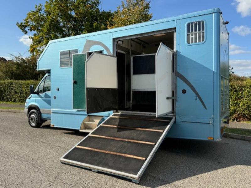 2006 6.5 Ton Iveco Daily coach built by Galloper. Stalled for 2 horses or 3 ponies rear facing, smart living at front with cut through cab. External tack locker at the rear. Excellent condition throughout..