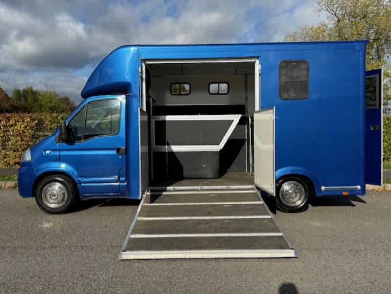 2008 58 Vauxhall Movano 3.5 Ton Coach built by Stratton Horseboxes. Stalled for 2 rear facing.. Full side ramp. Smart changing area at the rear. Excellent condition throughout. Low mileage.