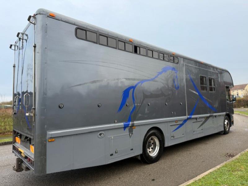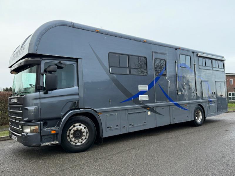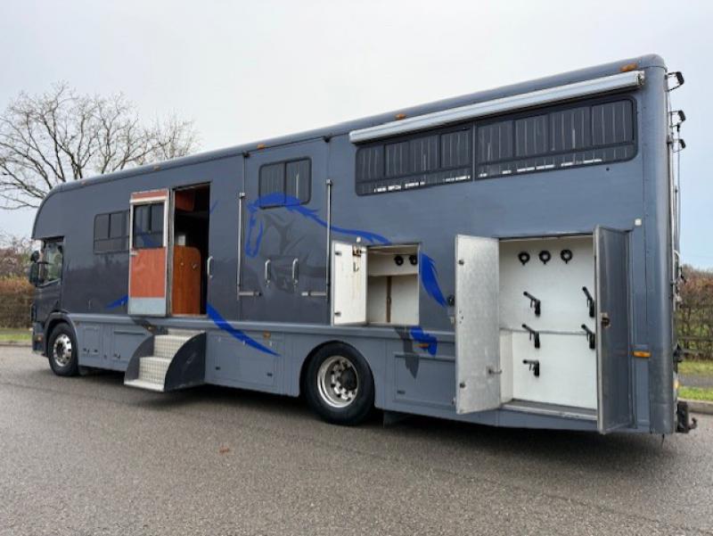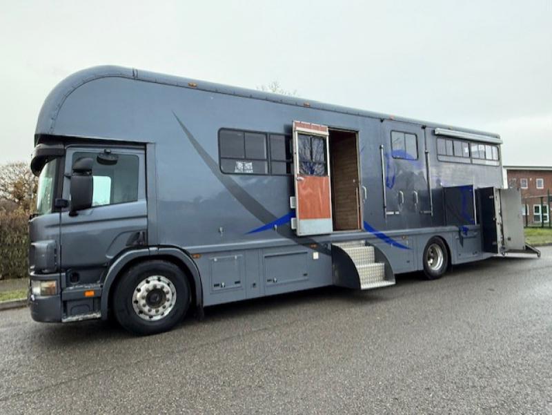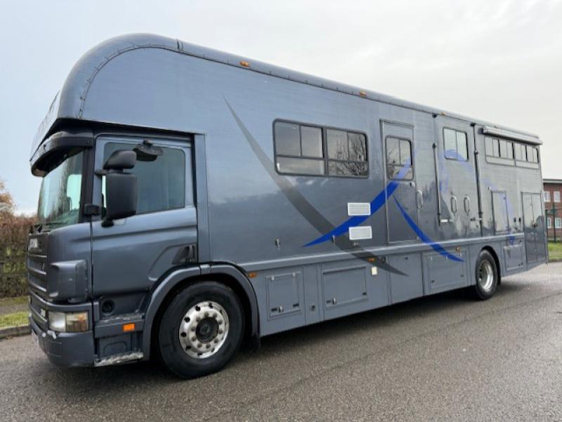 18 Ton Scania 310 18 ton Coach built by Marscom Coach builders. Stalled for 6 with smart living with slide out, Sleeping for 4. Toilet and shower. Well built horsebox