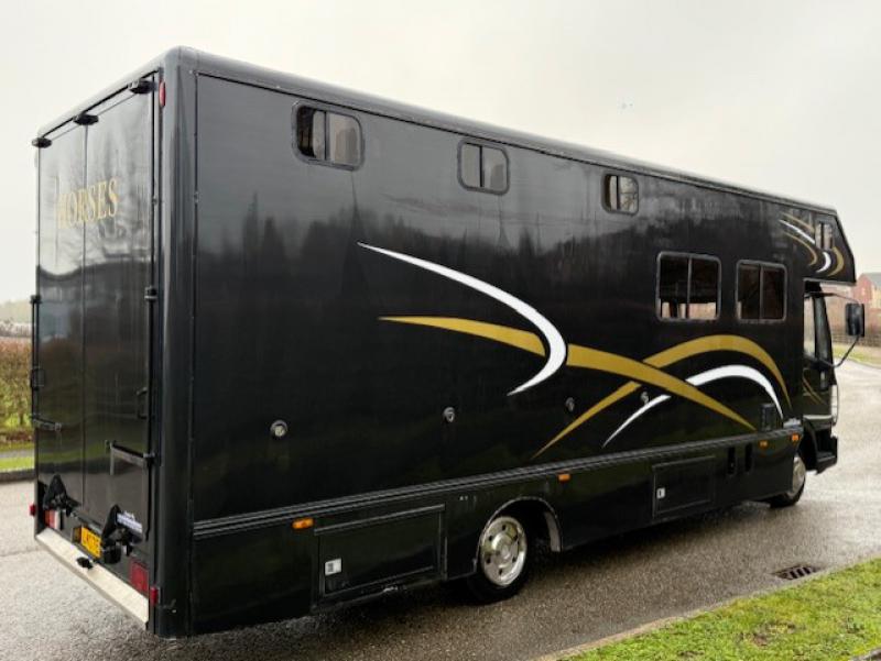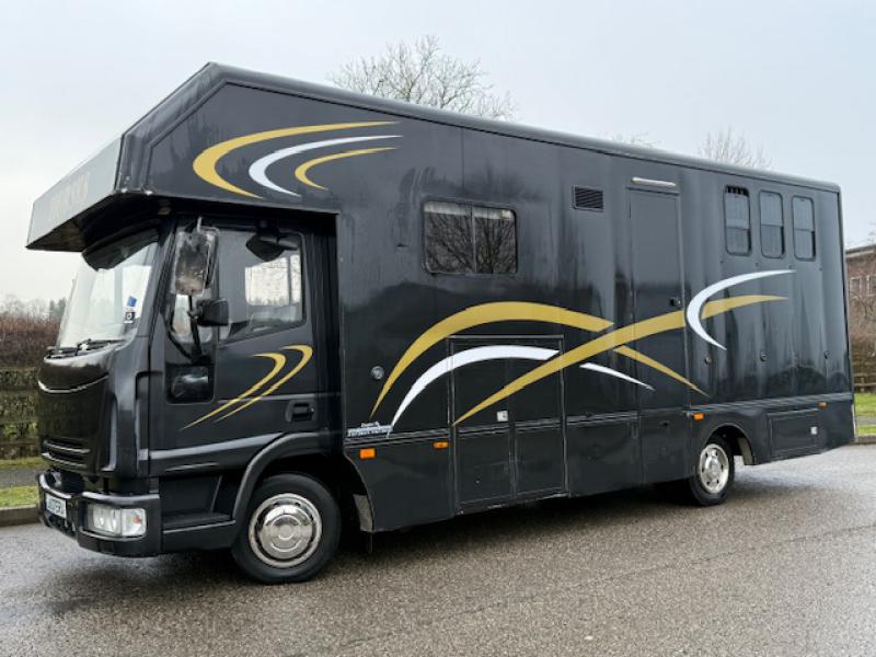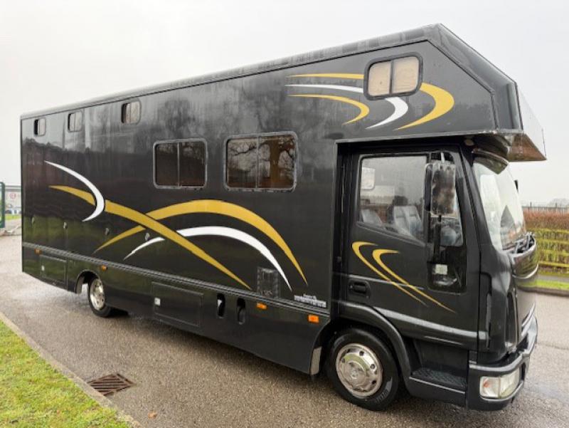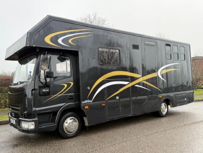 2007 Iveco Eurocargo 75E17 7.5 Ton Coach built by PRB horseboxes. Stalled for 3. Smart luxurious living, sleeping for 4. Toilet and shower.. Very low mileage. No external tack locker intruding into the horse area.