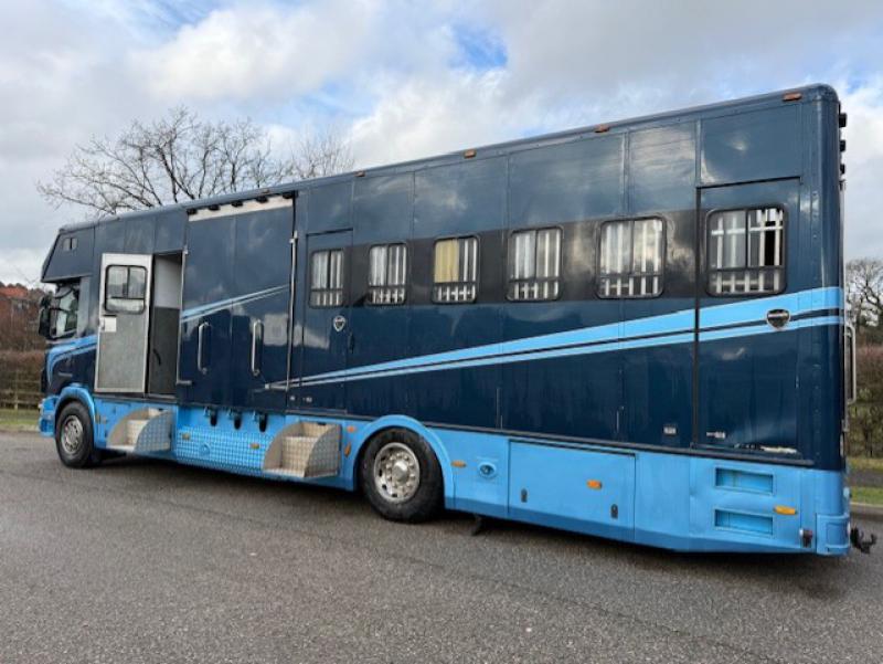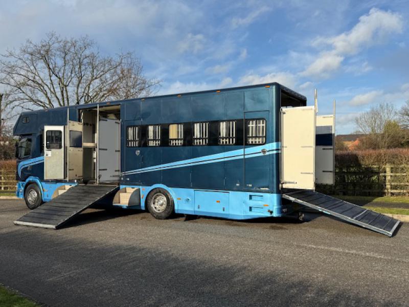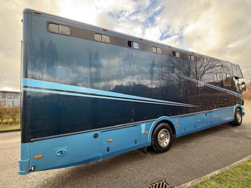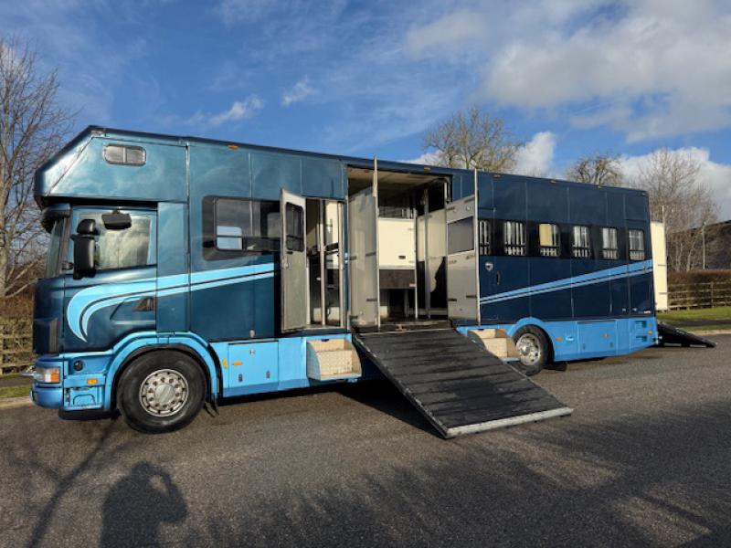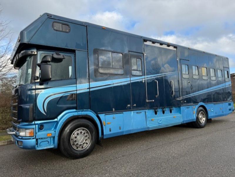 2000 Scania R cab 18,000 kg. Coach built by Whittaker Coach builders. Stalled for 8 with compact living, Sleeping for 4 Side and rear ramp. Full tilt cab.