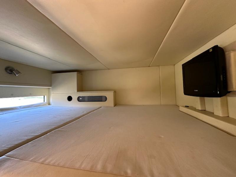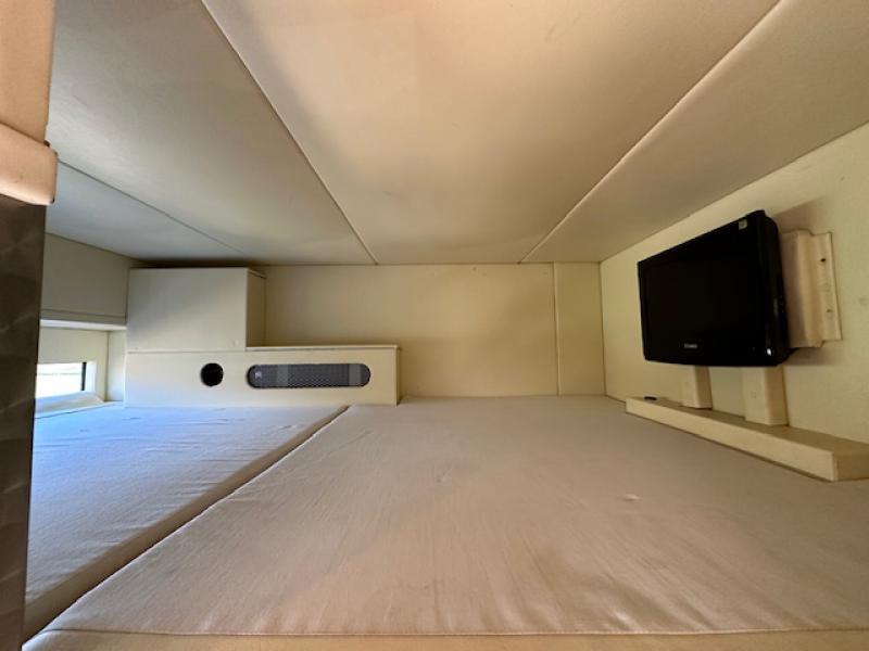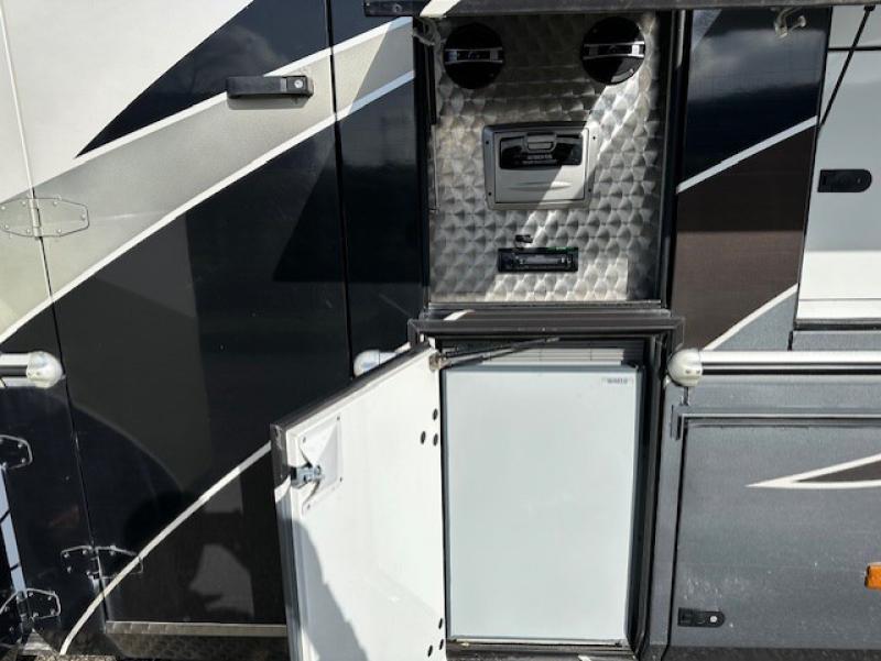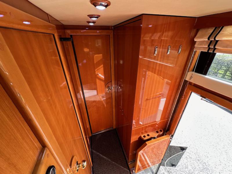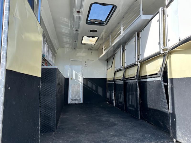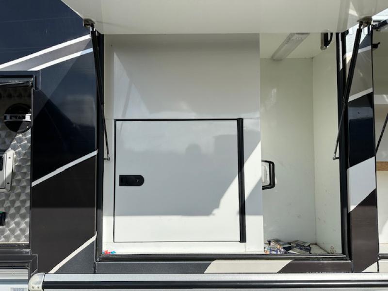 Rear jockey door with fold down steps into the last stall of the horse compartment