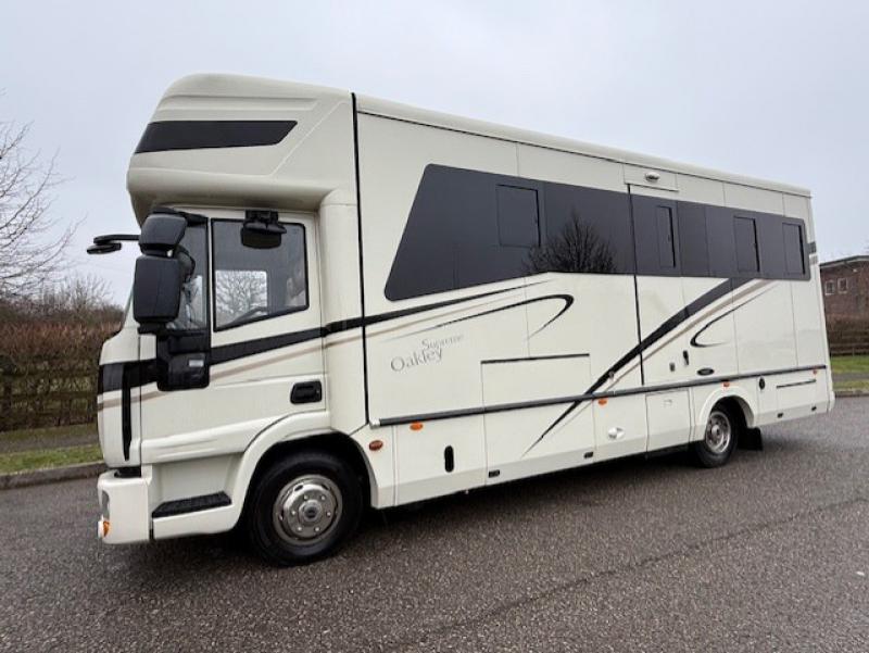 STUNNING 7.5 Ton 2010 Iveco Eurocargo 75E17 Automatic Coach built by Oakley coach builders. Oakley Supreme Model. Stalled for 3. Smart luxurious living. Sleeping for 4. Huge specification throughout. No external tack lockers intruding into the horse area.