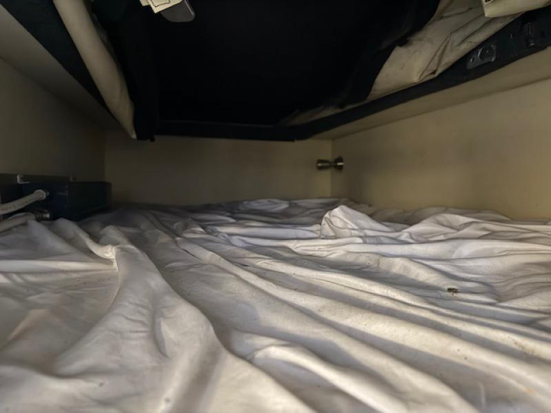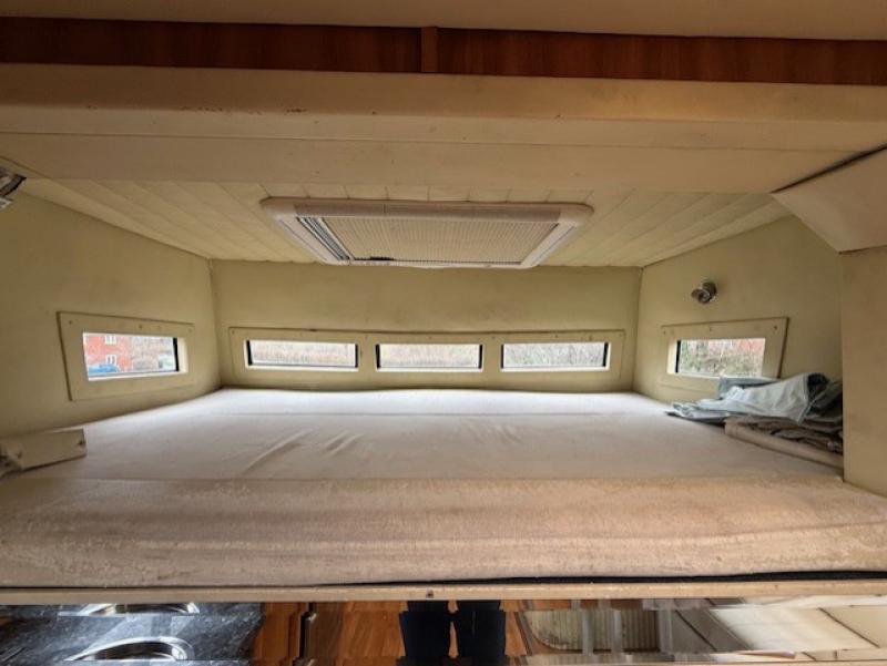 Large Luton with fitted mattress with large sky light in ceiling