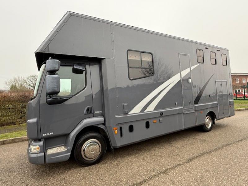 2007 DAF LF 150 7.5 Ton Coach built by Mcphie Horseboxes Coach builders. Stalled for 3. Smart spacious living, sleeping for 4. Toilet and shower. Full tilt cab.