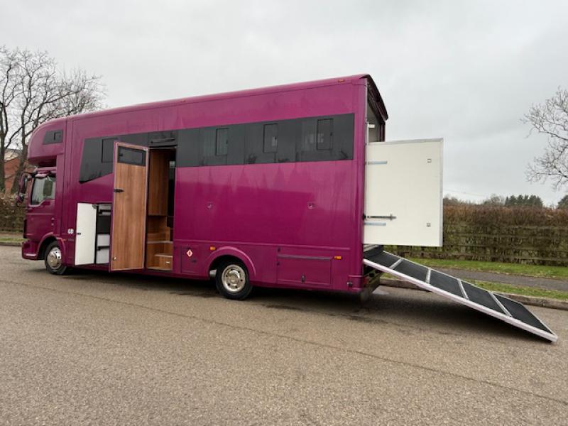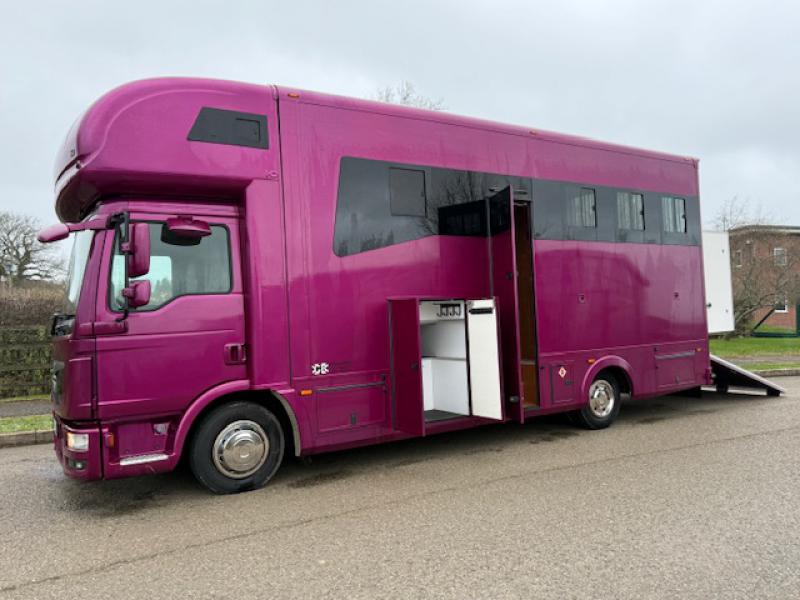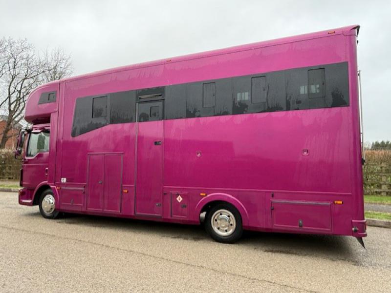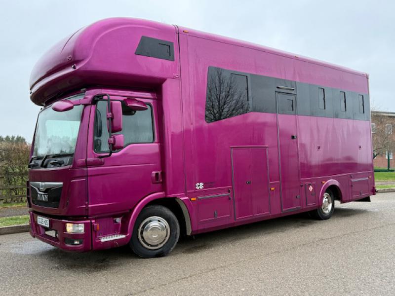 STUNNING 7.5 Ton 2016 MAN TGL 180 7.5 Ton Automatic coach built by G B Coach builders. Stalled for 3. Smart living, with sleeping for 5. Underfloor storage. Full tilt cab.. Beautiful truck. No external tack lockers intruding into the horse area