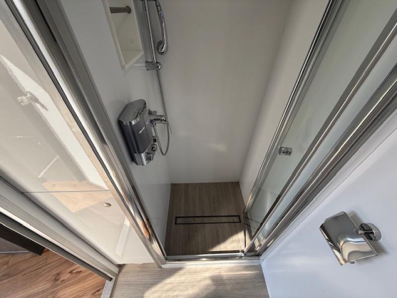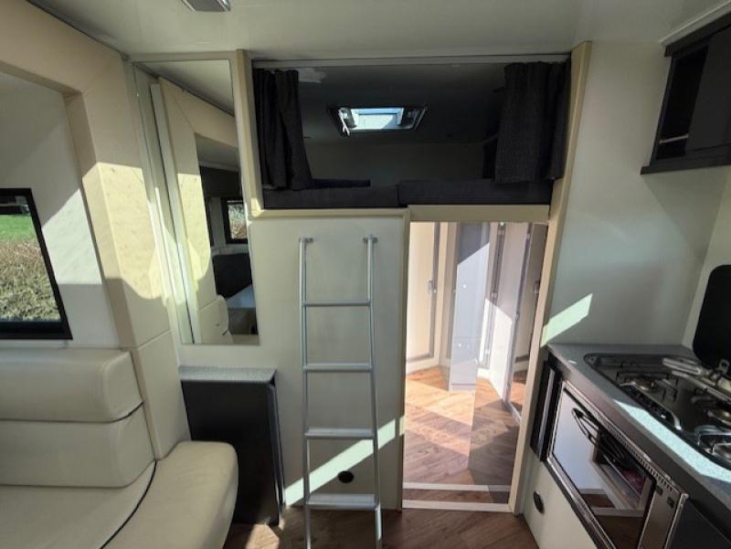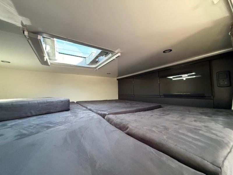 • Sleeping above toilet and shower with fitted mattress, sky light and multiple cupboards