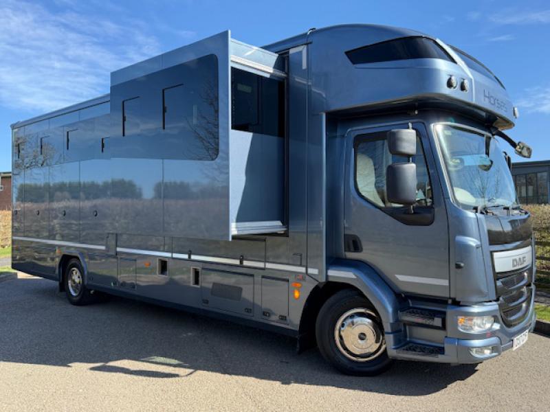 Beautiful 2017 DAF LF 230 automatic. 15,000 kgs. Coach built by PRB coach builders. Stalled for 4. Full luxury living, slide out, sleeping for up to 6 people. Huge specification. Stunning truck!