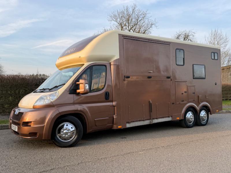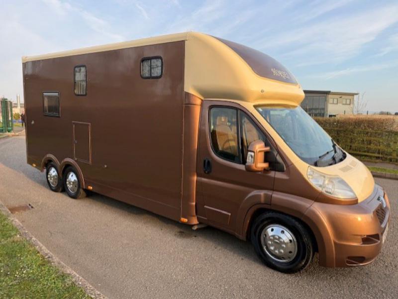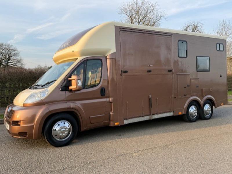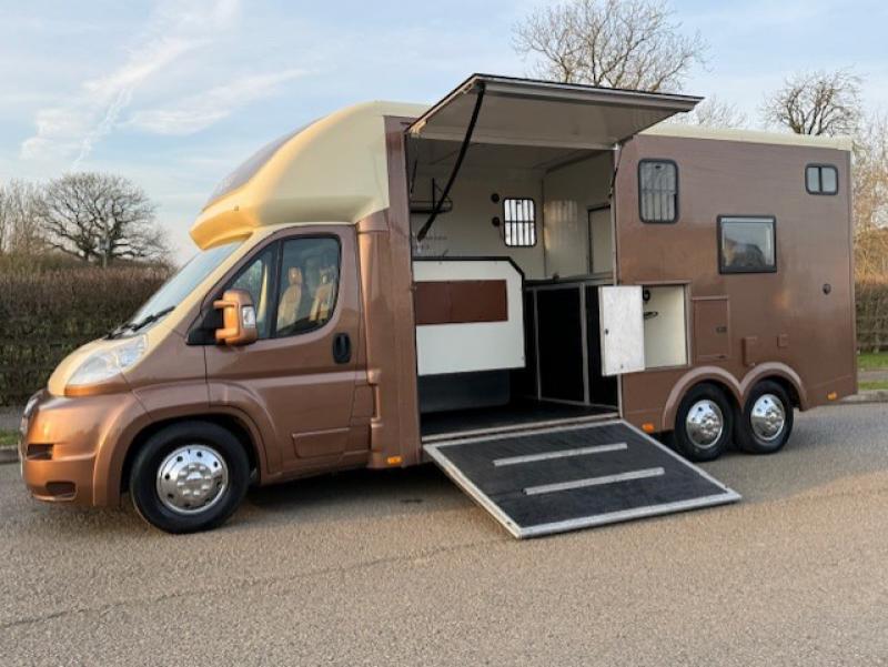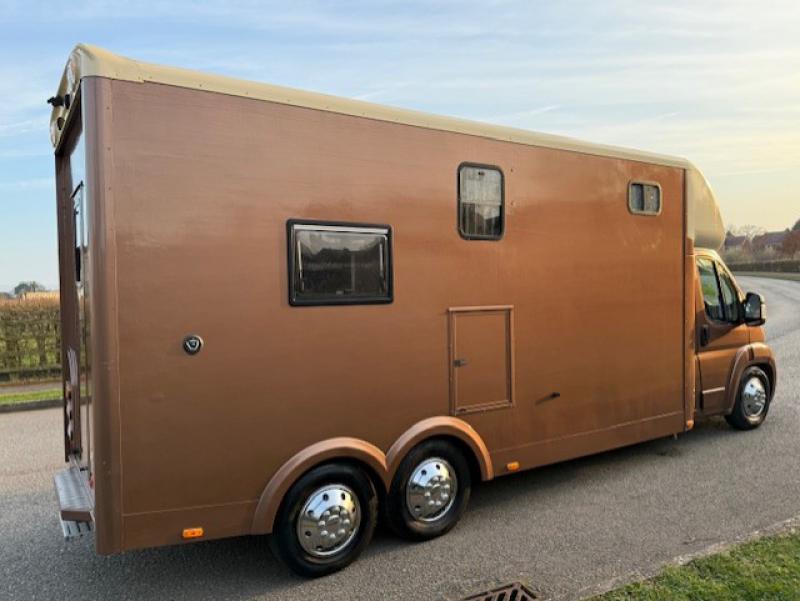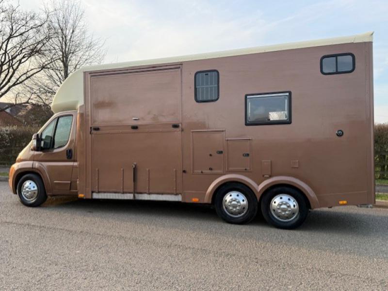 2013 Peugeot Boxer Coach built by Courchevel horseboxes 5 Ton 3 axle . Stalled for 2 rear facing.. Smart living at the rear., Toilet and shower. Beautiful condition throughout