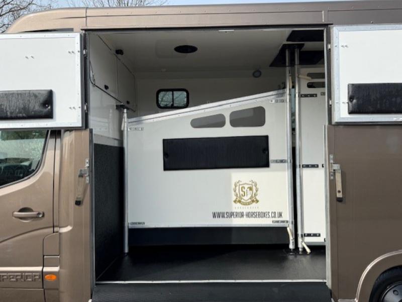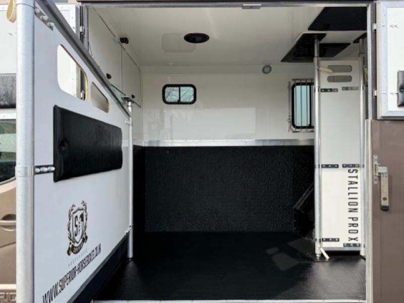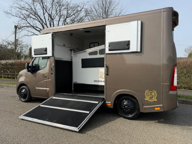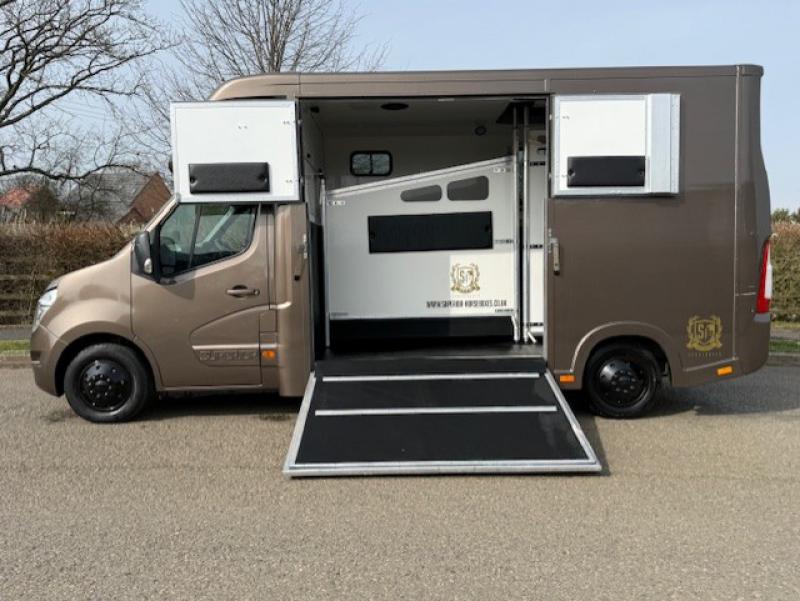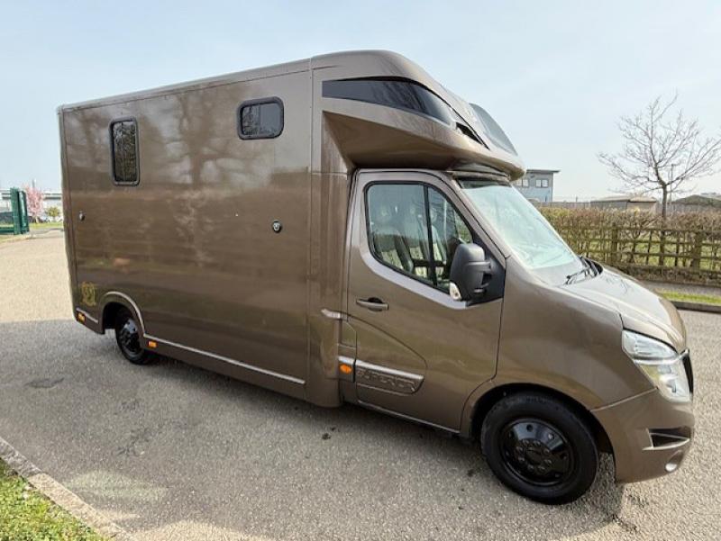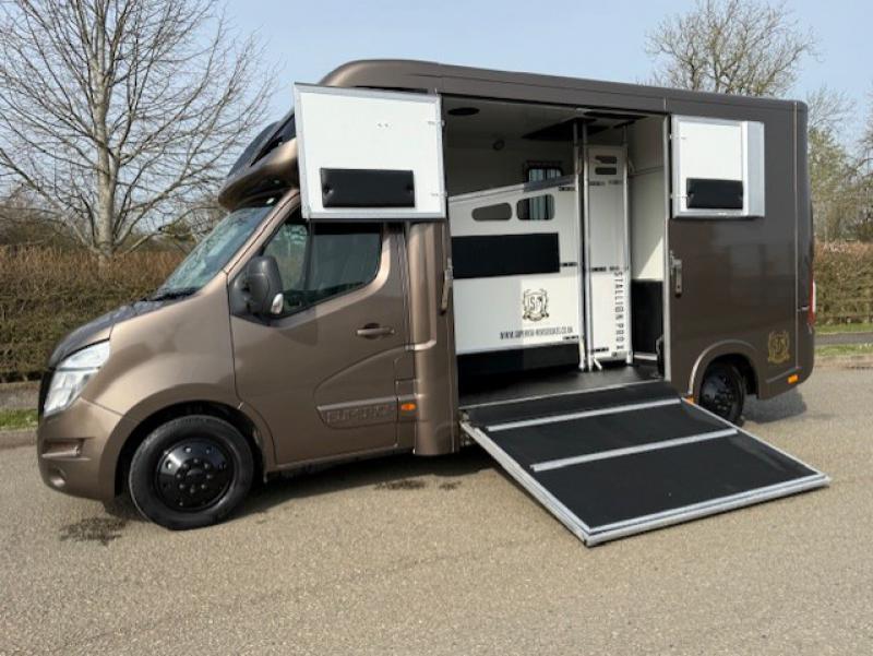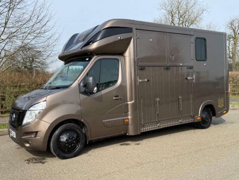 2017 Nissan NV400 3.5 Ton Coach built by Superior coach builders. Built on LWB chassis Stallion Pro X Model. Stalled for 2 rear facing. Full wall. Metallic paint. Stunning horsebox