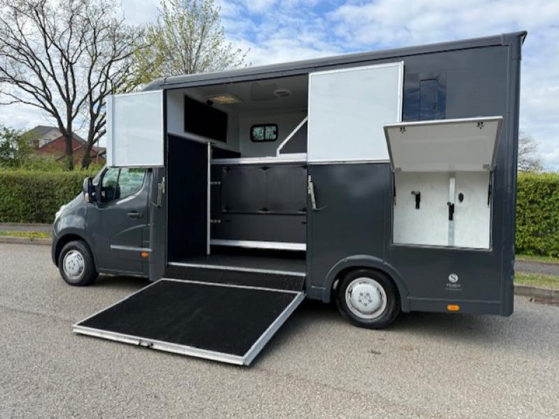 2016 Renault Master 3.5 Ton Coach built by Stable coach works. Long stall Model. Stalled for 2 rear facing.. Full wall. Smart area at rear. External tack locker.. Only 68,729 Miles!